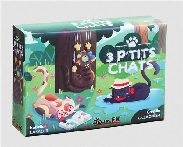 3 P’TITS CHATS est un jeu de cartes vivant et plein d’enthousiasme, un peu espiègle aussi (comme les petits chats représentés ! ) pour 6 ans et +,voire 5 ans si on joue d’abord sans les cartes Action, et même 3 ans avec la règle simplifiée.