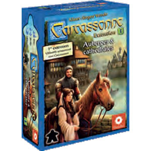 Auberges et Cathédrales, première extension pour Carcassonne, ajoute de nombreuses tuiles permettant d'étendre considérablement le jeu et propose également des tuiles spéciales, dont les cathédrales, qui peuvent augmenter la valeur des villes... à condition de les achever avant la fin de la partie !