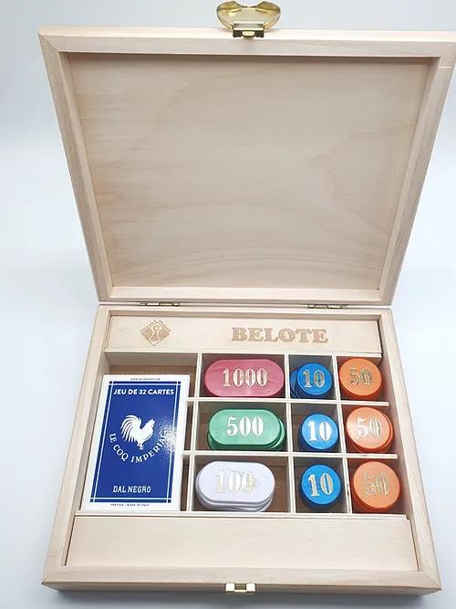 Coffret Belote bois avec jetons