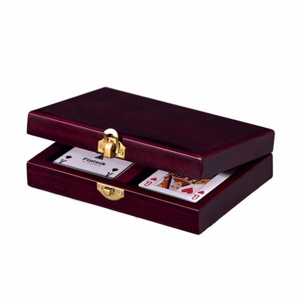 Coffret bois pour ranger 2 jeux de 54 cartes.