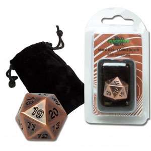 Dé à 20 faces cuivre pour jeu de rôle en métal avec bourse en velours.