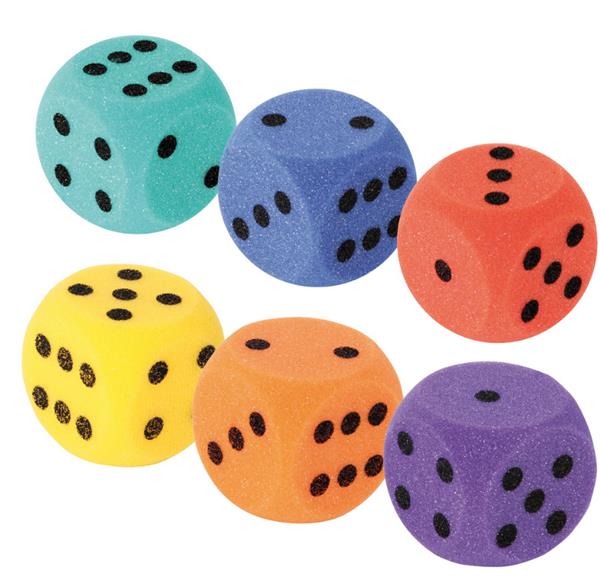 Dé à 6 face en mousse, 6 couleurs différentes.