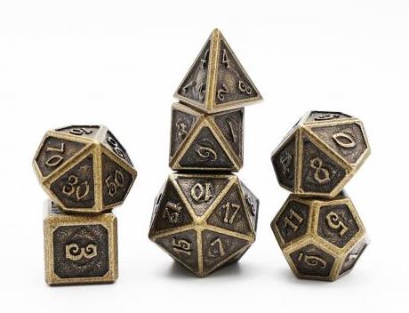 Dés pour jdr – Mini lot de 7 dés en métal (16mm) – Devil Eye Gold