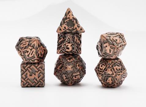 Dés pour jdr – Mini lot de 7 dés en métal (16mm) – Interlace Bronze
