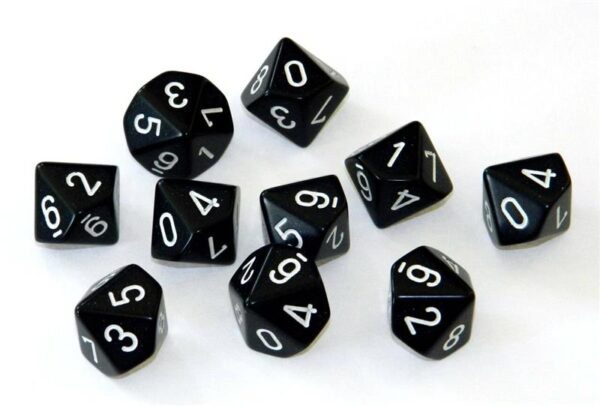 Dés pour jdr – set 10d10 Noir et Blanc