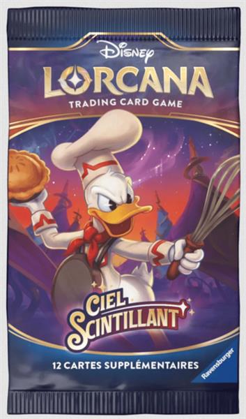Chaque booster du Chapitre 5 de Lorcana Ciel Scintillant, en français, est composé de 6 cartes « communes », 3 cartes « inhabituelles », 2 cartes « rare », « très rare » ou « légendaire », et 1 carte brillante (rareté aléatoire).