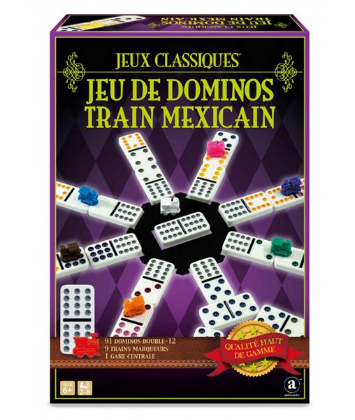 91 superbes dominos multicolores pour jouer à tout âge, sur son train, sur celui d'un joueur adverse de façon très captivante avec les doubles et les trains de blocage.
