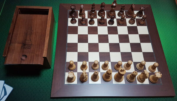 Échiquier marqueté en bois 40cm, case 40 mm, avec Pièces N°4 finement détaillées.