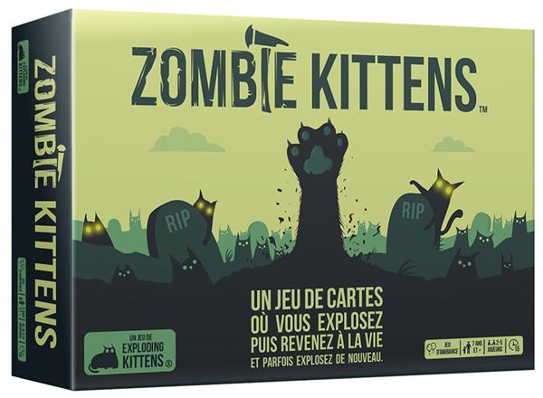Une déclinaison encore plus délirante de Exploding Kittens jouable indépendamment ou avec d’autres boîtes de la gamme. Désormais, si vous tirez un chaton explosif et disposez d’un chaton zombie, remettez la carte mortelle dans la pioche, continuez à jouer, et ramenez un autre joueur d’entre les morts !