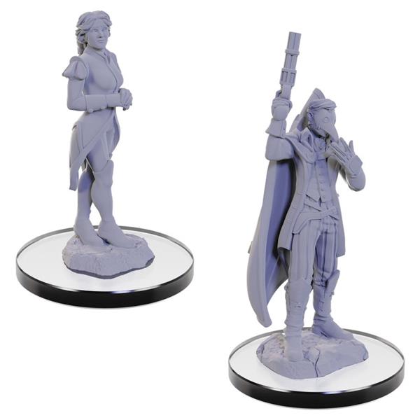 Ce blister contient deux figurines en plastique à peindre pour représenter vos personnages de jeux de rôle.