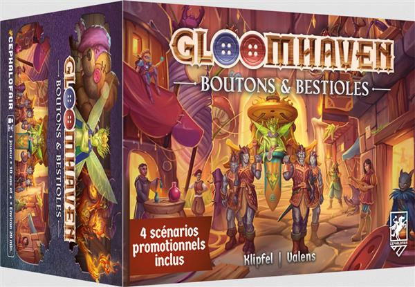 Gloomhaven – Boutons & Bestioles est un jeu solo, avec une campagne originale écrite par Isaac Childres, qui propose un style de jeu similaire à Gloomhaven mais dans un format réduit et plus court. Le jeu est autonome et ne nécessite pas le jeu Gloomhaven.