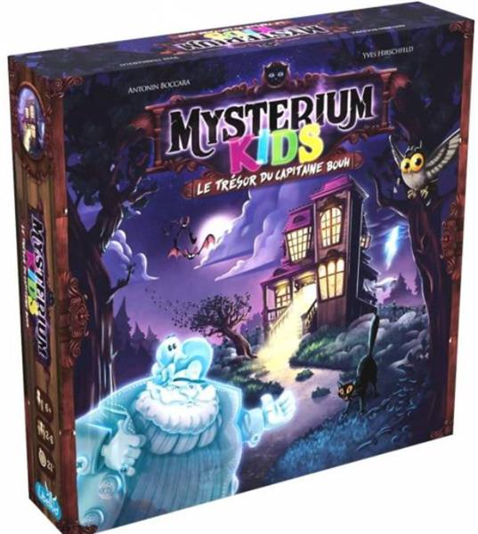 Mysterium Kids : le trésor du capitaine Bouh est un jeu coopératif pour enfants. Il revisite les jeux d'enquêtes tout en développant la créativité et la concentration chez les enfants. A tour de rôle, incarnez le capitaine ou les chercheurs du trésor et tenter de comprendre, grâce à des sons effectués avec un tambourin, quelle carte illustrée correspond à l'emplacement du trésor !