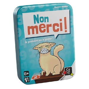 À votre tour de jeu, faites le choix d’accepter une carte ou de dire « Non merci ! » en posant l’un de vos jetons sur la carte refusée. C’est ensuite au joueur suivant de prendre une décision et éventuellement de récupérer votre jeton. Chaque carte acceptée fait perdre des points. Mais si vous reconstituez les suites, vous ne perdez que la valeur de la plus petite carte de la suite. Gérez au mieux vos jetons, car, de toute façon, il vous faudra accepter des cartes.