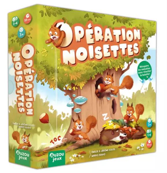 Opération Noisettes est un jeu d’habileté sonore, dans lequel vous devrez récupérer des noisettes et les déposer dans l’arbre sans réveiller la belette.