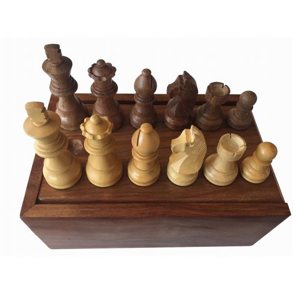 Pièces Échec N°4 en bois Plombées & feutrées, livrées en boite bois. Roi : 76mm.