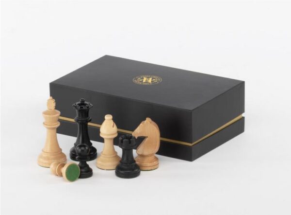 Pièces Échec N°3 Staunton en bois (Buis) Ebonisées plombées & feutrées, Roi 70mm env., livrées avec sacs en velours et boite carton.