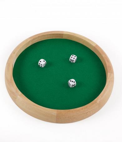 Piste de Dés 34cm bois naturel, avec 5 dés.