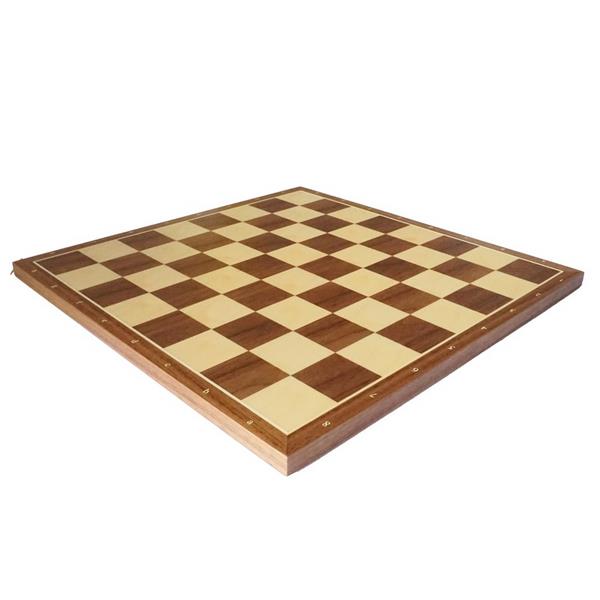 Bois de sycomore pour les cases blanches, bois de noyer pour les cases noires.