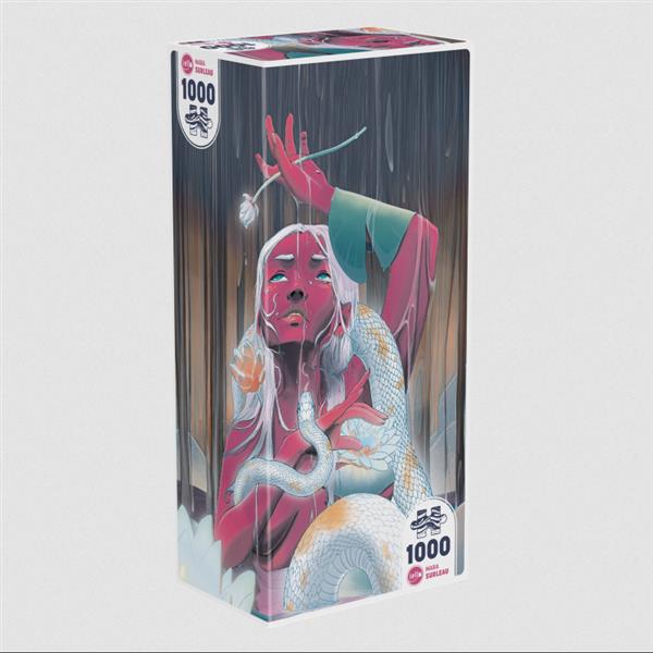 Des tons doux, des lignes délicates, mais une situation qui pourrait s’annoncer dangereuse. Prenez le risque d’apprivoiser cette créature enchanteresse et découvrez l’épreuve qui s’offre à vous. Son corps semi immergé, les fleurs qui l’entourent, son visage et ses yeux perdus dans la contemplation des serpents sont autant d’éléments qui vous permettront de vous immerger à votre tour dans ce puzzle !