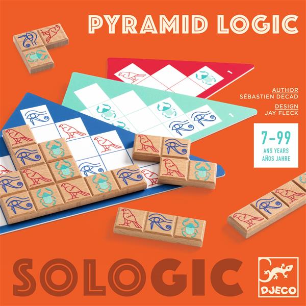 Un jeu de logique. Les célèbres pyramides égyptiennes à compléter à l’aide de 9 pièces-hiéroglyphes en bois.