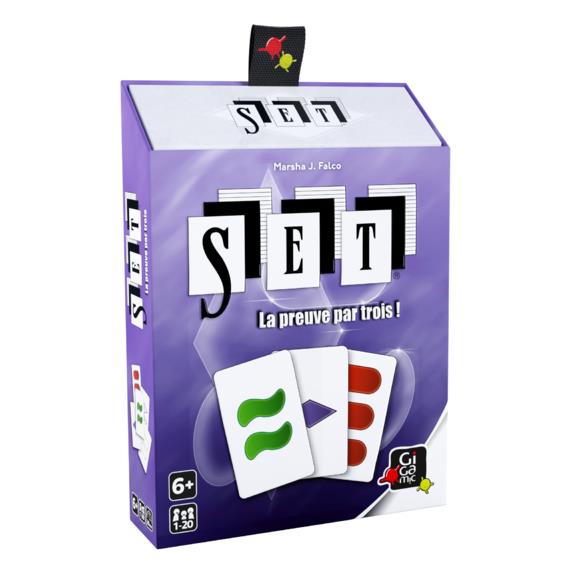 Le but du jeu consiste à observer les cartes exposées sur la table pour être le plus rapide à identifi er un SET. Chaque carte présente des symboles qui combinent 4 caractéristiques: COULEUR (rouge, vert ou mauve), FORME (ovale, vague ou rectangle), NOMBRE (un, deux ou trois symboles), REMPLISSAGE (plein, hachuré ou vide). Un SET est un ensemble de 3 cartes dont chacune des 4 caractéristiques est soit totalement identique, soit totalement différente aux 2 autres cartes.