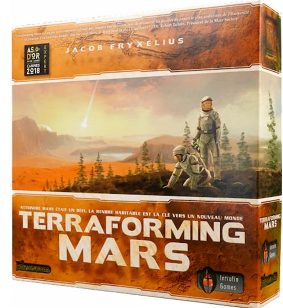 Dans Terraforming Mars, vous contrôlez une corporation bénéficiant de certains avantages. Investissez dans de vastes projets, mettez en place une chaîne de production, positionnez vos cités et forêts sur la carte, et soyez le premier à valider les objectifs et récolter les récompenses !