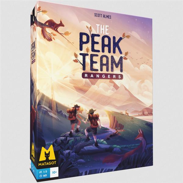Dans The Peak Team, un jeu coopératif de Scott Almes, des gardes forestiers travaillent ensemble pour explorer la réserve, s'occuper des animaux et accomplir leurs missions avant d'être à court d'actions !