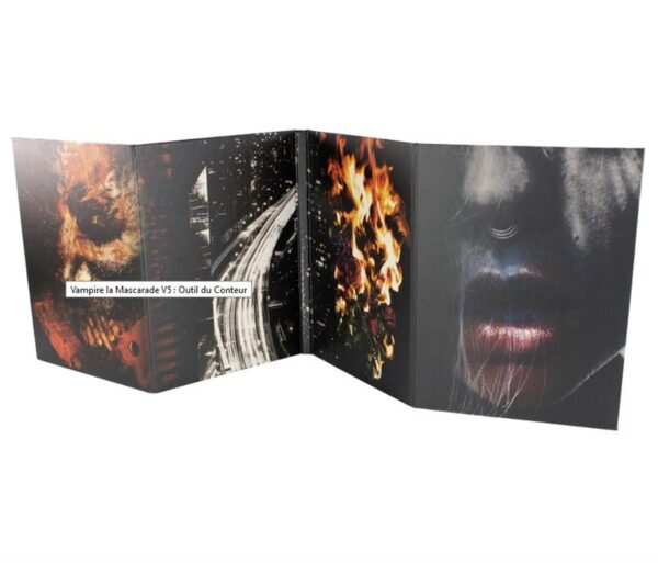 Mettez du sel dans vos récits d’horreur et d’intrigue pour Vampire : la Mascarade, 5e édition grâce aux Outils du conteur qui comprennent: un écran de jeu ainsi qu’un livret destiné aux conteurs de 40 pages.