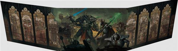 - L’écran : un écran solide en trois panneaux portant la superbe illustration d’une lutte épique entre l’Adepta Sororitas et des Nécrons d’une dynastie inconnue.